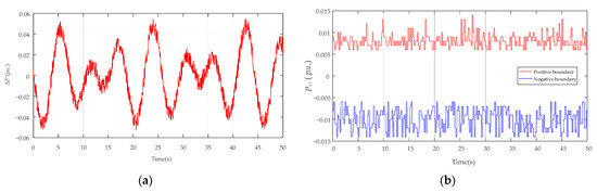 Random perturbation function in the pre-learning phase: (a) Random Function of Active Power Disturbance; (b) Random Function of EV Output Power Boundary.