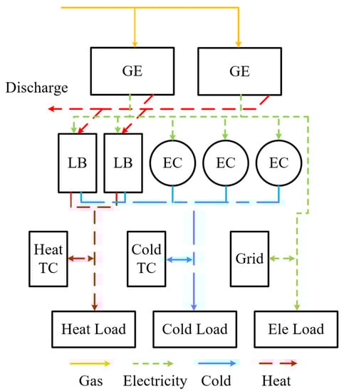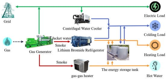 The scheduling techniques of determining electricity by heat and determining heat by electricity, as well as the scheduling method of adding cold and heat storage, are all considered in this study. Because of the addition of a cold and thermal energy storage tank, storage can be done ahead of time in the scheduling process based on the user’s cold and heat demand, reducing the start and stop or dispatching times of the internal combustion engine and lithium bromide unit. Adding several energy storage devices can expand the integrated energy system’s scheduling scope, changing the current situation where the system can only be optimized by changing the production equipment’s output. This update expands the scheduling options for the integrated energy system Figure 2.