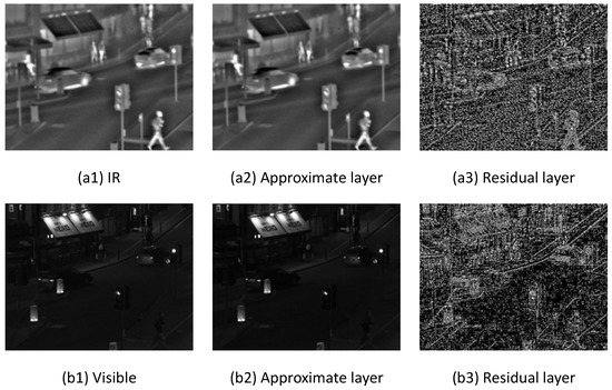 The approximate layers of IR and visible images are shown in Figure 2(a2,b2), respectively.