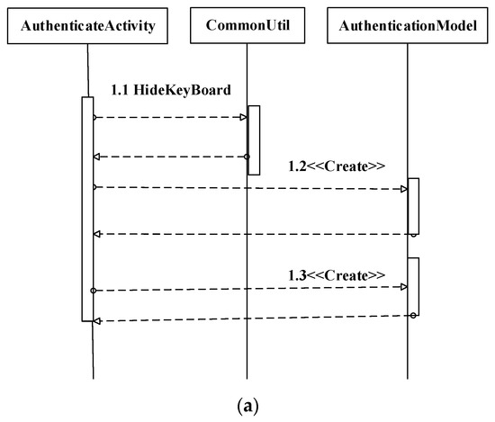 Authentication functionality is one of the most important functions in Zamwallet. For top-up and transfer of money, functionality authentication is a single method. Users require a password, fingerprints, and OTP authentication for access to the system. With a private user key, the user password is encrypted into the RSA unit using the RSA algorithm. Authentication of the OTP identification code with user credentials is required when logging into the system. When a user confirms their account credentials and clicks the OTP button, the authentication system will deliver the registered phone number to the success list, to the verification code, where the submitted data should match the user login information. If this does not match, an error message is shown to the client, and it must be validated by the customer with OTP authentication. The user shall be forwarded to the profile if the requested data matches the credentials in the database. The user will see the updating transaction in this process. The user transaction updates the user balance and servers instantaneously. The authenticating function can be divided into three categories—AuthenticateActivity, AuthenticateOtpActivity, and AuthenticateSuccessActivity. Figure 8a describes the sequence diagram of AuthenticateActivity, Figure 8b describes the AuthenticateOtpActivity, and finally, Figure 8c describes the AuthenticateSuccessActivity.