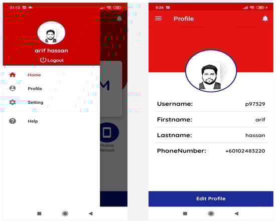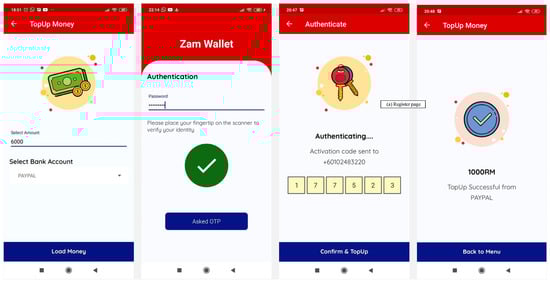 Two fundamental modules are available in the proposed Zamwallet application—one is the admin module, and the other is the user module. The admin module is used to enter login details, add/update/delete items, add-on/update/delete details for registered users, and update order status. It is a system management module that provides an interface for dealing with admin and user management. This systems management monitoring aids the admin in connecting things to the database, updating and removing user information, reviewing user orders, collecting transaction summaries, and collecting all instructions received by the registered user. Management admins are frequently in charge of the system. It is also known as the back-end module. The real-time Firebase database, which uses automated user updates, is employed in our proposed method. Firebase also offers machine-learning techniques for application data security via the ML Kit mobile SDK that offers a selection of highly competent and efficient pre-trained models based on deep learning algorithms [54]. Various kinds of attacks can be reduced using machine-learning techniques, such as malware detection and cloud security [54,55].