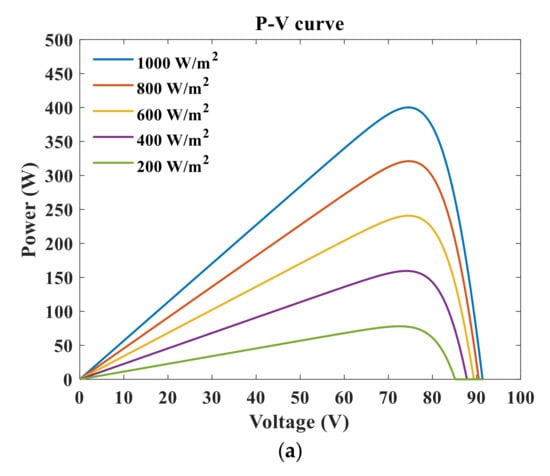 In Equation (4), scaling factor M is usually a fixed value, and it can be further designed in accordance with Equation (5). In Equation (5), |dP/dV|ΔVmax represents the maximum slope when PSS is ΔVmax under STC. However, as Figure 2 shows, the maximums of P–V curve slopes are different under various irradiance levels; therefore, providing that in order to reach the same ΔVmax, the required optimal M values vary under different irradiance level as well. When under high irradiance levels, a smaller M should be selected due to the higher slope; when under low irradiance levels, a larger M should be picked. In other words, a large value of M is beneficial for the tracking speed; however, it will result in substantial oscillations around the MPP. In contrast, a small value of M can cause the MPP tracking speed becomes slow. For different conditions, the required scaling factor is different, which limits the universality of the method.