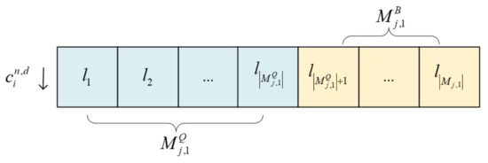 For a soft QoS traffic flow i, is equivalent to . Lemma 3 shows that in the optimal solution to problem P2, at most, one soft QoS traffic flow satisfies , and must be the last soft QoS traffic flow to obtain resources in the set . Therefore, the optimal solution of problem P2 can be solved by assuming that the first m business flows in the set can be allocated to resources, and the corresponding value can be calculated. At the same time, m is traversed in the set to find the optimal solution to the problem. Assuming that m soft QoS traffic streams can obtain services from base station j, there are the following two types of situations: