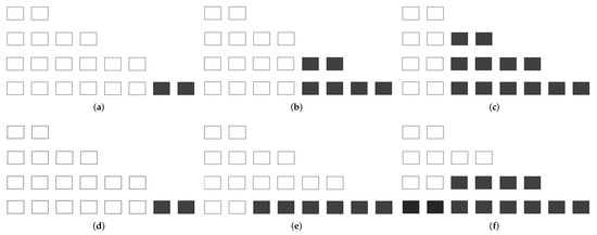 Proposed CAS cell replacement methods for an 8-bit square root circuit: (a) SR with , (b) SR with , (c) SR with , (d) HR with , (e) HR with , and (f) HR with .