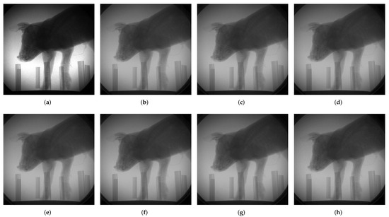 Contrast Enhancement. (a) Figure, (b) accurate, (c) ASC-SR with p 4, (d) ASC-HR with p 4, (e) ASC-SR with p 6, (f) ASC-HR with p 6, (g) ASC-SR with p 8, (h) ASC-HR with p 8.