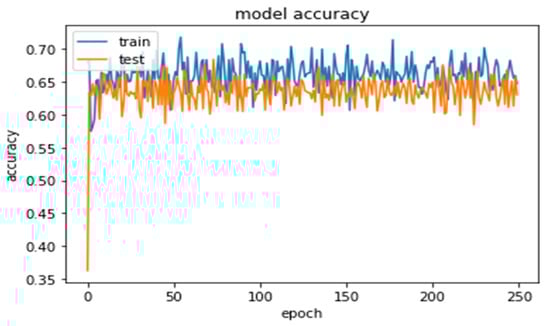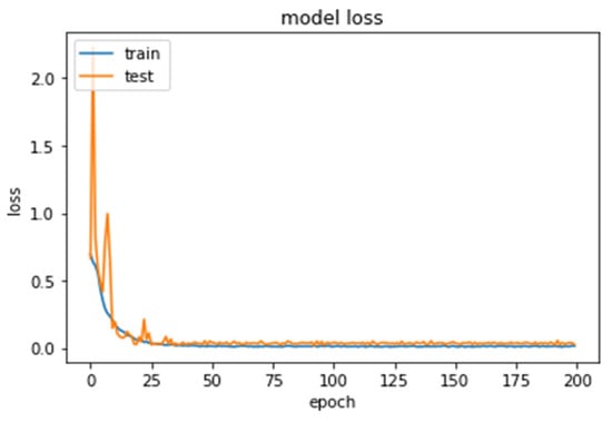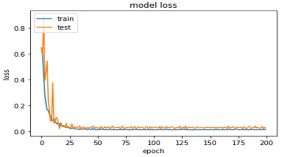 Figure 6 and Figure 7 illustrate the result we obtained from the combination of ReLU activation function and RMSprop optimizer. As anticipated, the higher the training samples and epochs, the lesser the error we achieved. Furthermore, at approximately 200 epochs, its marginal utility diminished, and thus, we made use of only 200 epochs during the experiment. To enhance the classification performance of our model, we deployed less batch size although at the expense of training time. In addition, to smoothen our training iteration and obtain optimal use of GPU, a modest batch size of 32 was used instead of the size of 50 that we originally intended to use although the model experienced some local minima bounce-out due to perturbations emanating from the lesser batch size. The proposed model attained approximately 0.9950 training accuracy and about 0.9943 test accuracy, as shown in Table 2 and Figure 8 and Figure 9, respectively. Table 2 illustrates the comparisons of the training error and accuracy and test error and accuracy in relation with varying epoch sizes. The values in bold indicate the best results obtained with RMSprop optimization function with different activation functions, such as scaled swishmax, swishmax, leaky relu, prelu, and relu activation functions