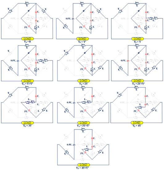 - Roy, T.; Sadhu, P.K. A Step-Up Multilevel Inverter Topology Using Novel Switched Capacitor Converters with Reduced Components. IEEE Trans. Ind. Electron. 2021, 68, 236–247. [Google Scholar] [CrossRef]
