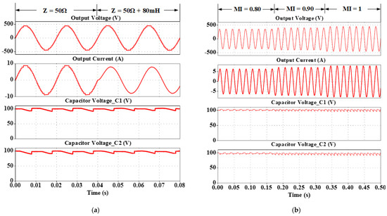 (a) Simulation results with load change (b) Simulation results with modulation index change.