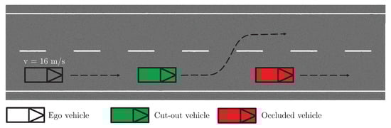 Various research projects and initiatives concerning the safety validation of ADS were initiated around the globe. In Japan [,] and in Europe [,,], projects emerged with a strong focus on scenario-based assessment approaches towards a safety validation of ADS. In the US, there are various NHTSA reports [,] and other ongoing actions dealing with the described topics []. Other initiatives include releasing national standards as guidance for the safe development and rollout of automated vehicles [,]. Currently, there is only one regulation from the United Nations (UN) that deals with ADS; this is a uniform provision concerning the approval of automated lane-keeping systems (ALKS) []. The ALKS is defined as an ADS that can be activated if a set of conditions is met, including highways and a maximum operational speed of 60 km/h. The regulation is intended for passenger cars. An implementation of an ALKS will be used as an ADS for the simulation study presented in this article.