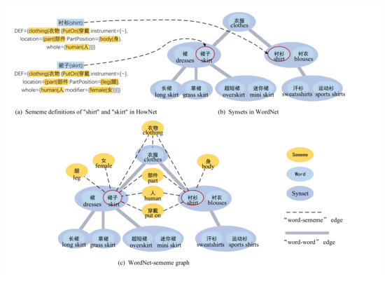 - Niu, Y.; Xie, R.; Liu, Z.; Sun, M. Improved word representation learning with sememes. In Proceedings of the 55th Annual Meeting of the Association for Computational Linguistics, Vancouver, Canada, 30 July–4 August 2017; pp. 2049–2058. [Google Scholar]
