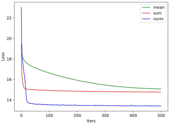 As shown in the figure, all three aggregation methods can help the proposed model converge to the optimized result within dozens of epochs. Among them, the normalization-based (norm) aggregation approach can obtain its optimized parameters within 20 epochs of training. Yet, the mean and sum aggregation methods need more epochs.