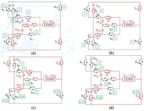 Positive conduction states (part 2). (a) State 4 (b) State 5 (c) State 6 (d) State 7.