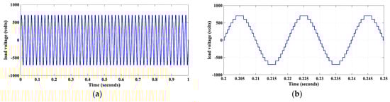An open-circuit fault in S5 leads to loss of levels ±2 Vdc, Vdc, Vdc with levels ±Vdc, ±5 Vdc, ±6 Vdc, ±7 Vdc being generated by the application of modulation reconfiguration. The dc component remains zero during fault; therefore, the root mean square (RMS) value of load voltage is also required for fault detection. SHE is applied for obtaining the optimum waveform to minimize the lower-order harmonics. The resulting waveforms are discussed in Figure 10.