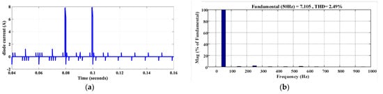 Simulation results for S6 fault for (a) diode current and (b) current harmonic profile.