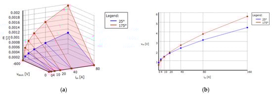 With the power loss of every device known beforehand, the steady-state junction temperature of every switch can be determined. Thermal modeling analysis was implemented in PLECS software with the load as 50 + 50j Ω. IGBT with diode IKW40N65ES5 data was used for thermal modeling. The thermal description of the joule losses for the IGBT and Diode is given in Figure 11 and Figure 12. Respectively. The calculated values of πR, πT, and πS are given in Table 4.