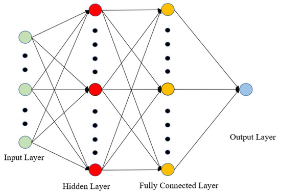 To improve the prediction performance of the model, a fully connected layer is added to the model after the hidden layer of the LSTM. The periodic displacement of the Baishuihe landslide and Bazimen landslide is mainly influenced by rainfall and reservoir water levels, which are periodic and repetitive. Therefore, the function of adding a fully connected layer is to receive information from each node of the LSTM and synthesize the characteristic information of each node in the LSTM. Therefore, each node in the fully connected layer will not ignore the rainfall and reservoir water level information before and after predicting the final result. Then, a correction linear unit (ReLU) activation function is used to avoid the effect of the neural network vanishing gradient [44,45]. Finally, the model uses an output unit to calculate predicted landslide displacement data. At present, a lot of applications use the LSTM-FC model, including biomedical engineering [45], photovoltaic power generation forecasting [46], PM2.5 concentration prediction [47], medical treatment [44], and human action recognition [48]. The structure of the LSTM model after adding a fully connected layer is shown as Figure 2: