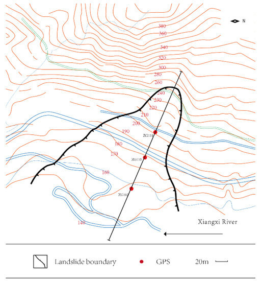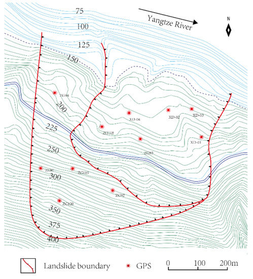 The landslide is located on the right bank of the Xiangxi River, and the slope is north–south. The landslide is an accumulation layer landslide and is arranged in the shape of a dustpan at the foot of the bank slope. The geographical coordinates are longitude 110°45′30″ and latitude 30°58′16″.