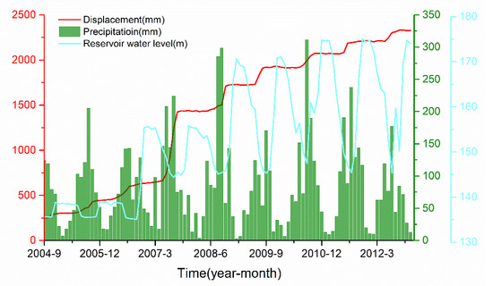 Relationship between the displacement of Baishuihe landslide and external environmental factors.