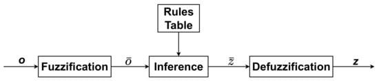 Defuzzified output controller value z is calculated from matrices  and , as shown in Equation (20).
