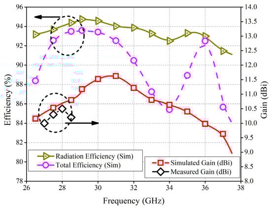 The proposed multi circular is fabricated and tested using the in-house facility. Figure 3 and Figure 4 show the simulated and measured reflection coefficient and efficiency with the measured gain. As observed in the figure, the reflection coefficient response is in good agreement. The measured gain differs 0.2 dB from the simulated gain at 28 GHz. The simulated radiation and total efficiency are above 95% at 28 GHz.