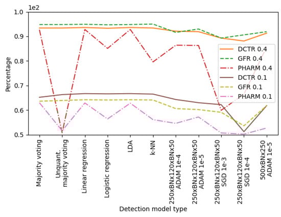 For the shallow ML-based algorithms, we decided to focus on the ensemble classifier, which has been reported in related studies as one of the most promising. During our experiments, we verified a number of ML-based methods used to combine the set of votes coming from all base learners to return the final classifier decision. These include: linear regression, logistic regression, linear discriminant analysis (LDA), and k nearest neighbors (k-NN). Moreover, the majority voting scheme (i.e., choosing the most popular classification decision, which is the original ensemble vote fusion method), as well as unquantized majority voting (i.e., classification based on the sum of non-quantized decisions of the whole ensemble) was included for comparison.