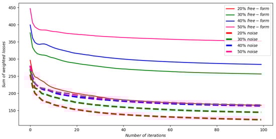 The graph of the total weighted loss changes during the iterative inpainting process.