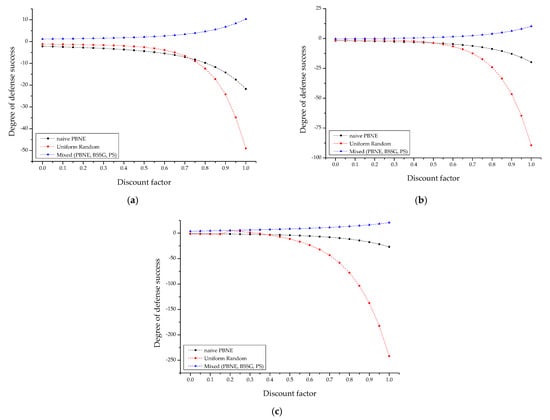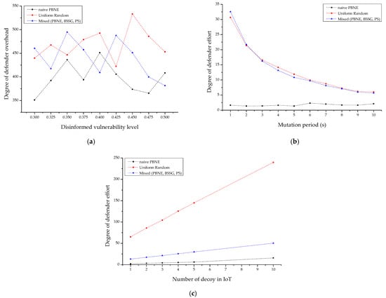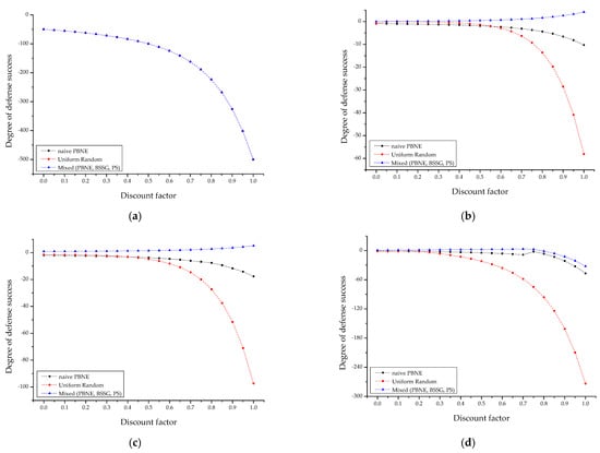 PBNE-based game equilibrium is determined based on and as shown in Equations (11)–(14). In this case, in Equation (11) similarly configured based on and is the probability of prior probability-based judgment of the IoT defender. Equation (12) is the probability of posterior probability-based reasoning by the IoT defender related to reconfigured based on the updated internal deception-defense strategy after the IoT defender’s feedback-based signaling to . In addition, when calculating the PBNE-based game equilibrium through and , the result is affected by and the time to reach the equilibrium in the game is controlled by the configuration of , or related to the signaling initiative: