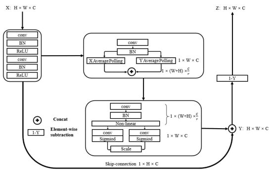 - Hou, Q.; Zhou, D.; Feng, J. Coordinate attention for efficient mobile network design. In Proceedings of the IEEE/CVF Conference on Computer Vision and Pattern Recognition, Nashville, TN, USA, 20–25 June 2021; pp. 13713–13722. [Google Scholar]