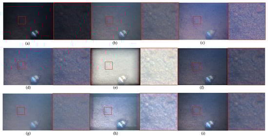 where and are set to 1 and is set to . In the underground or underwater environment, the light source is limited. To increase the brightness of the working environment and improve the visual performance, strong searchlights and other equipment are often utilized in these environments. However, the problems of center overexposure and edge underexposure due to strong light searchlight, coupled with absorption and reflection effects on light, coal dust, and other interference, motivated us to design a multiple loss. Ablation experiments demonstrate the effectiveness of the loss, as discussed in Section 4.
