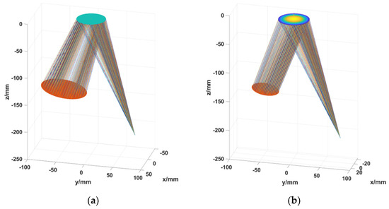 The direction of the optical path can be analyzed reversely in the MPMD system. Following the conventional camera calibration model [21], the camera light ray is considered as a probe ray, and for a camera pixel , the corresponding point of the light from the camera in CCS can be calculated by