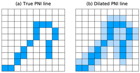 Boundary dilation. (a) true PNI line; (b) dilated PNI line with expansion width 1.