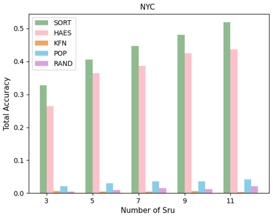 Basically, serendipity consists of relevance, novelty, and unexpectedness. We have already explained the relevance and unexpectedness of our above experimental results. In novelty, we will check the users’ profiles that have no recorded history, and then we will recommend POIs that will be novel to them. Regarding addressing the cold-start problem here, novelty stresses whether the trip is obscure to the user. Trips unfamiliar to a user are generally unpopular. Users are frequently acquainted with popular trips, where popularity can be estimated by the number of ratings in the system. Basically, we can address the cold-start problem using novelty to recommend novel trips to the new users. It has been seen that the results of all baselines instead of RAND in a cold-start scenario are inadequate. We can see that POP is performing significantly worse in the cold-start problem because POP recommends the trip using the popularity of POIs. The KFN and HAES are better than POP because they also use serendipity to address the cold-start problem. However, SOTR is still remarkably worthier than the other baselines. Results of addressing the cold-start problem are presented in
