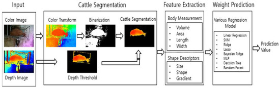 Na, M.H.; Cho, W.H.; Kim, S.K.; Na, I.S. Automatic Weight Prediction System for Korean Cattle Using Bayesian Ridge Algorithm on RGB-D Image. Electronics 2022, 11, 1663. https://doi.org/10.3390/electronics11101663