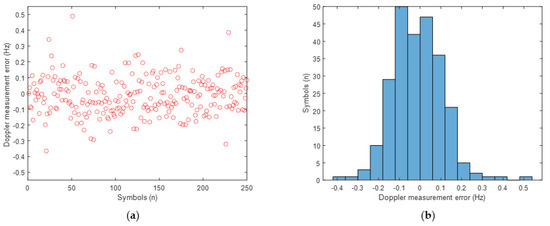 (a) Doppler error, (b) Histogram of the estimated Doppler error.