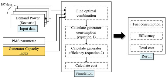 Figure 9 illustrates the simulation procedure of this study. The simulation environment was configured in NI’s Labview, and the fuel consumption and efficiency of the generator were calculated based on the required load/demand, which was the input data in the simulation, and the total cost was derived.
