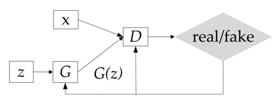 - Goodfellow, I.; Pouget-Abadie, J.; Mirza, M.; Xu, B.; Warde-Farley, D.; Ozair, S.; Courville, A.; Bengio, Y. Generative adversarial nets. In Proceedings of the Advances in Neural Information Processing Systems, Montreal, QC, Canada, 7–14 December 2014; pp. 2672–2680. [Google Scholar]