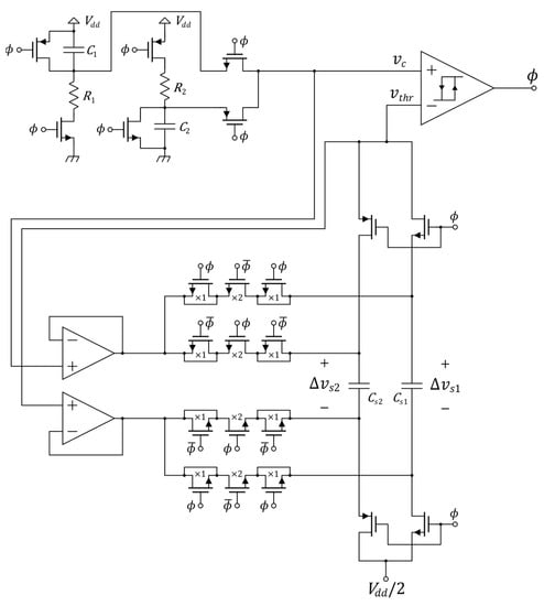Dual-capacitor RC oscillator equipped with the proposed CSTA technique.