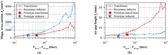 Using the definitions in [,], the length of the magnetic path le,Tc, the magnetic cross-section Ae,Tc, and the necessary number of turns NPFC to obtain the selected inductance LPFC can be calculated as: