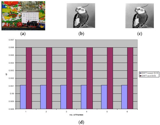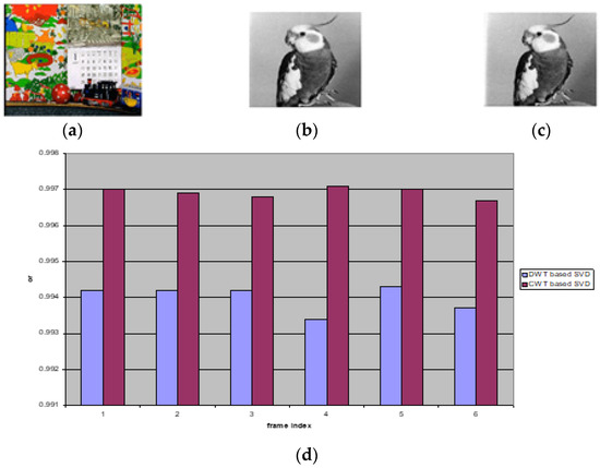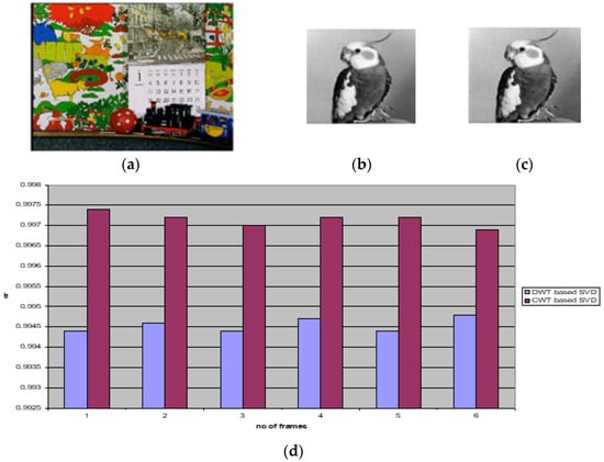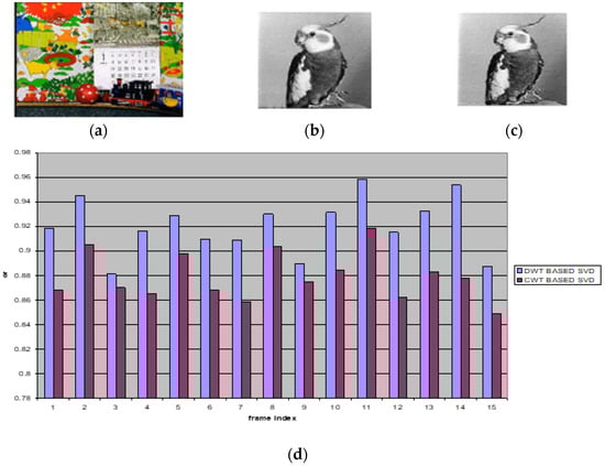 - Shanmugam, M.; Chokkalingam, A. Performance analysis of 2 level DWT-SVD based non blind and blind video watermarking using range conversion method. Microsyst. Technol. 2018, 24, 4757–4765. [Google Scholar] [CrossRef]