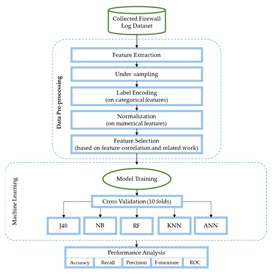 - As-Suhbani, H.E.; Khamitkar, S.D. Classification of Firewall Logs Using Supervised Machine Learning Algorithms. Int. J. Comput. Sci. Eng. 2019, 7, 301–304. [Google Scholar] [CrossRef]