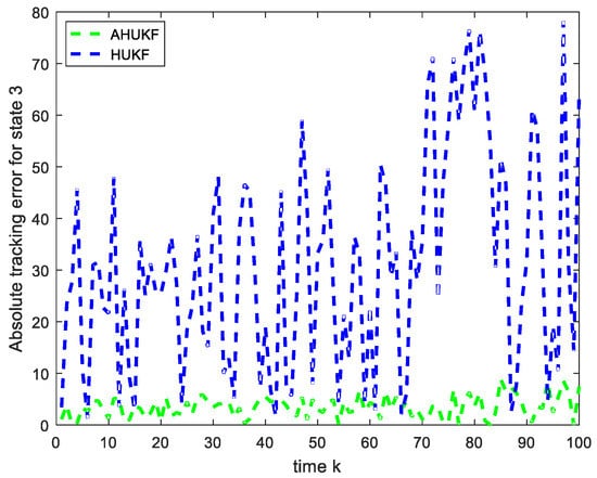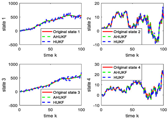 - Based on the improved Sage–Husa algorithm, an AHUKF algorithm is provided, which improves the accuracy and stability of the system state estimate. The simulation example of target tracking illustrates the effectiveness of the proposed algorithm.