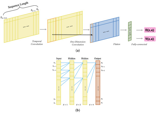 There are two important functions in the A3C algorithm, one is the policy function, which is used to select the corresponding optimal action according to the current state, and the other is the state-value function, which is used to calculate the expected reward after taking a certain action. However, if the policy is only made by the current state, the chosen action may not be the best one, since the algorithm just observed one single time point and don’t make decision upon the past varying trends. Inspired by some state-of-the-art time series forecasting model, TCN, which is the combination of causal convolution and residual blocks, is applied as the policy function and state-value function in this paper, while the causal convolution can extract features over time, and residual model can prevent A3C from falling into gradient vanishing during parameter update [28].