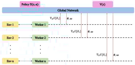 - Mnih, V.; Badia, A.P.; Mirza, M.; Graves, A.; Lillicrap, T.; Harley, T.; Silver, D.; Kavukcuoglu, K. Asynchronous methods for deep reinforcement learning. In Proceedings of the International Conference on Machine Learning (PMLR), New York, NY, USA, 19–24 June 2016; pp. 1928–1937. [Google Scholar]