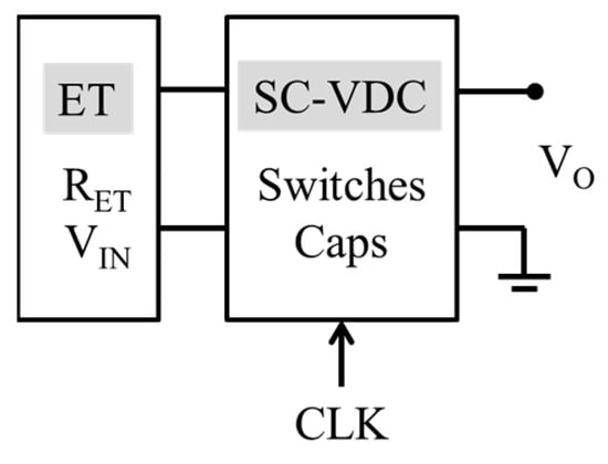 Block diagram of energy transducer (ET) and switched-capacitor voltage-down converter (SC-VDC).