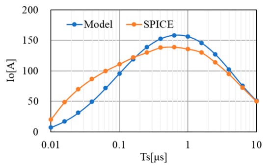 SPICE simulations were run with various Ts, resulting in Figure 9. The model still had a mismatch against SPICE, but if the model was requested to determine the optimum conditions for Ts (500 ns in this example), the model was considered to be in agreement with the SPICE result. To design SC-VDCs precisely, one could run SPICE multiple times, starting at the conditions which the model predicts.