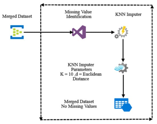 As shown in Figure 3, in this study, K-nearest neighbors are used to input missing values. Each sample’s missing values are changed using .