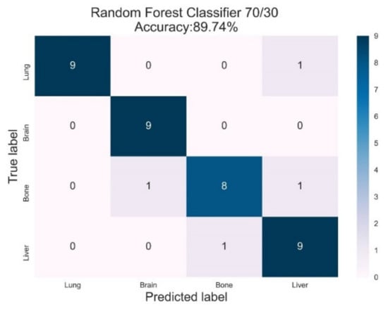 The lungs are the second most common location for metastatic development with 20–54% pulmonary secondary tumor. BC, colorectal, and renal cancer are the most common predominant laceration leading to BCLuM in adults. In some instances, the cause remains unclear and could be listed as the unknown primary cancer. Pulmonary metastatic disease may have heterogeneous clinical features and may have signs or symptoms with or without them. The BCLuMs are most often associated with endovascular distribution in the distal arterial pulmonary circulation of tumor cells [22]. The lungs would be the first sizeable capillary bed a BC cell faces after it has escaped into the bloodstream. As a CTC in the lungs, they can contact blood vessels of up to . Since these CTCs are five times bigger than the tiny pulmonary capillaries in these capillary beds, the risk of BC cell detention and eventual extravasation into the lungs is high [1]. In reality, about 60% of metastatic BC patients eventually suffer metastases of the bones or lungs in their lives. BC patients are highly vulnerable to BCLuM. Life expectancy is poor with median survival just 22 months after BCLuM treatment. In particular, BCLuM was diagnosed for 60–70% of metastatic BC patients who finally died [23].