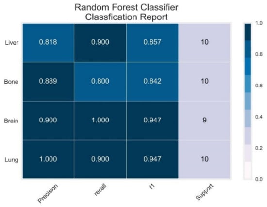 Lastly, the identification of the 16 most essential Entrez Gene IDs responsible for predicting four different metastatic locations (bones, brain, liver, lungs) on the merged dataset, as mentioned above, with reliable evaluation metrics using classification models such as decision trees, random forest, K-nearest neighbors, and support vector machines.