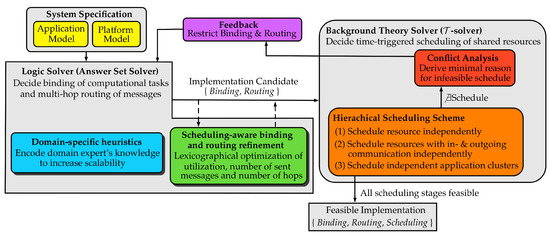 - Andres, B.; Biewer, A.; Romero, J.; Haubelt, C.; Schaub, T. Improving Coordinated SMT-Based System Synthesis by Utilizing Domain-Specific Heuristics. In Proceedings of the 13th International Logic Programming and Nonmonotonic Reasoninh Conference, LPNMR, Lexington, KY, USA, 27–30 September 2015; pp. 55–68. [Google Scholar] [CrossRef]