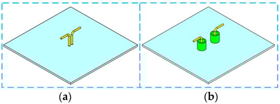 The proposed antenna’s wideband design procedure. (a) dipole without sleeves; (b) dipole with sleeves.